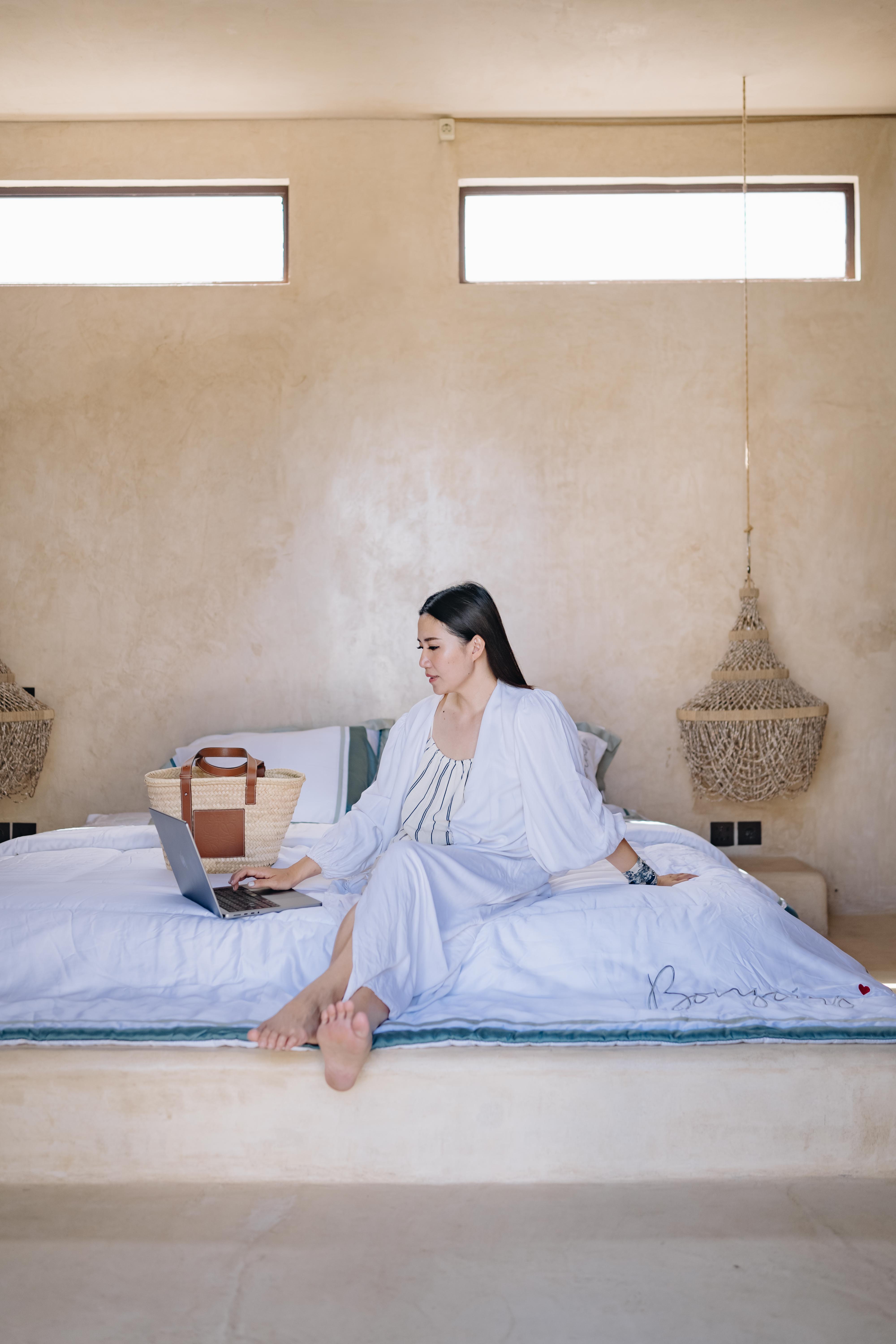 Crafted from soft, breathable fabric with a silky finish, each piece features delicate stitching that says “Goodnite,” “Sweet dreams,” and “Bonjours.”